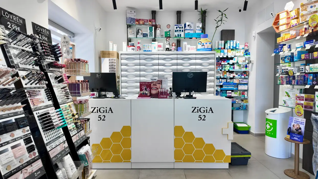 Proyecto de reforma integral para la farmacia Zigia 52, situada en el barrio de la Concepción de Madrid. El objetivo fue transformar por completo una farmacia anticuada y con poca visibilidad en un espacio moderno, accesible y atractivo tanto para el cliente como para el equipo de la farmacia.