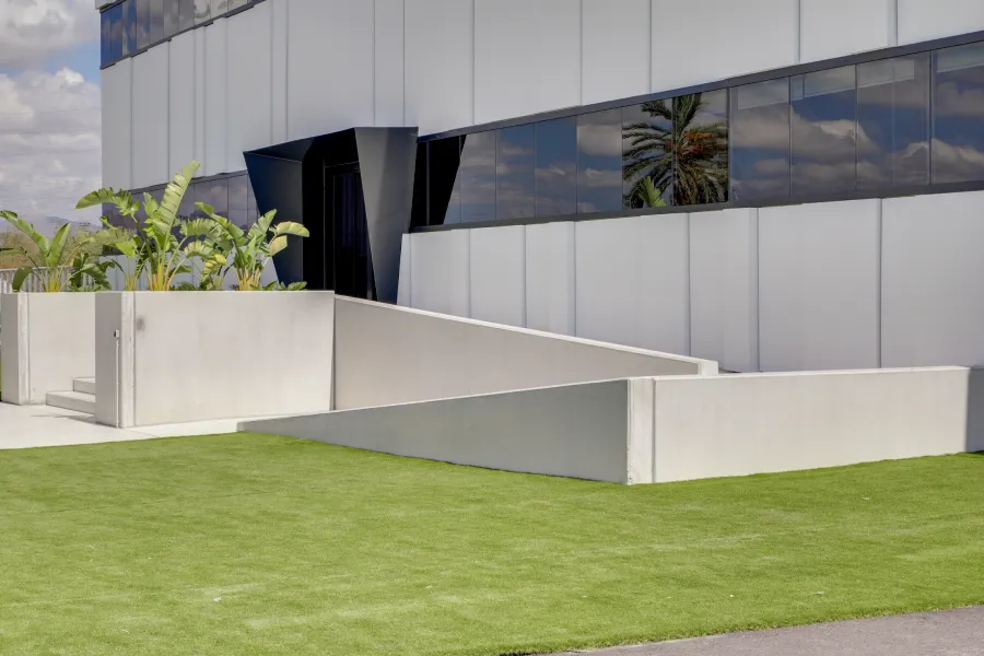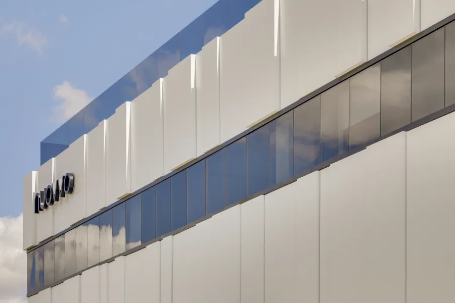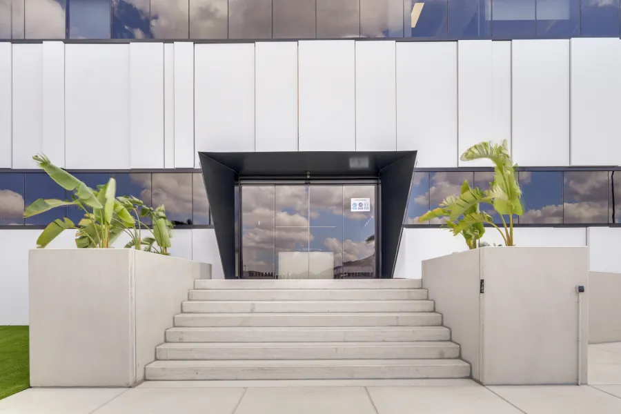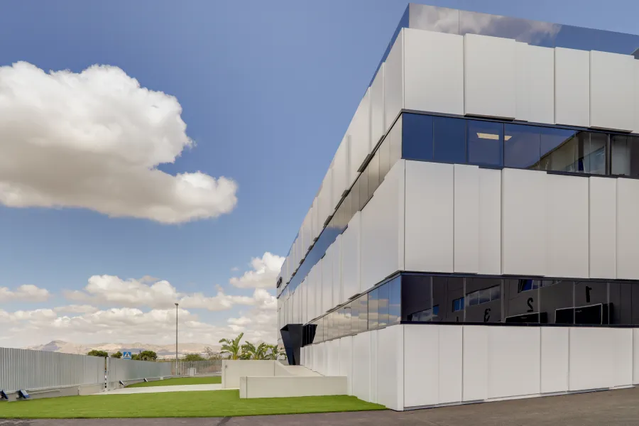 En este proyecto para nuovvo, en Redován (Alicante), se construyó una fachada distintiva combinando cristal y bandejas de panel composite, dando como resultado una piel arquitectónica moderna y muy cuidada. Cada pieza del composite fue fabricada a medida, formando un puzzle milimétrico donde cada módulo encaja con precisión única.